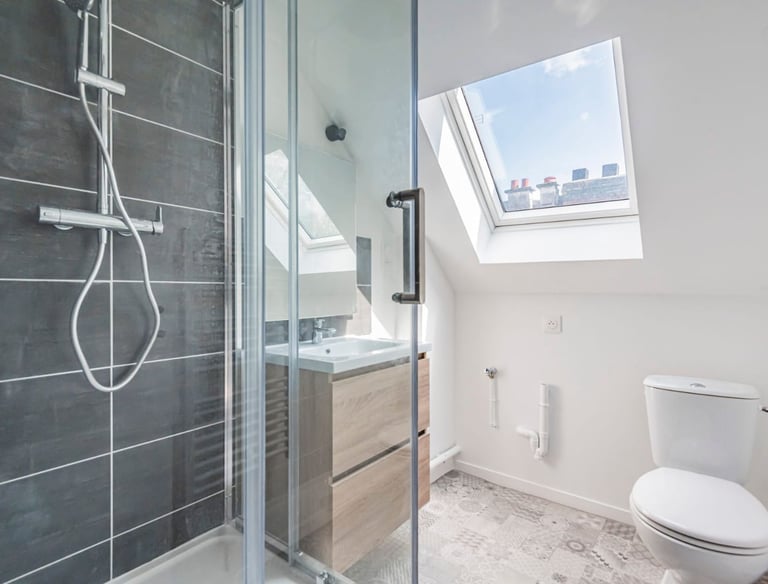 Plomberie, douche à l’italienne, carrelage, sanitaires, étanchéité.